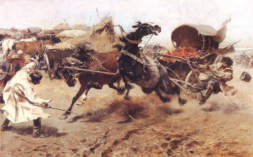 | Keywords: Brandt Konie poniosly.jpg Horses bolted Konie poniosły oil canvas cm 65 110 5 Private collection Probably set in the late 17th century in Kresy http //www pinakoteka zascianek pl/Brandt/Images/Konie_poniosly jpg www pinakoteka zascianek pl ca 1885 Creator Józef Brandt Copyright expired PD-Art Other versions PD-old-100 Józef Brandt Kresy in art Paintings of horse driving Road accidents in art | ||||