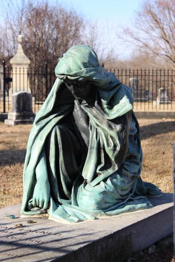 Keywords: brass monument cemetery grief metal old sculpture verdigris statue robe cloak stone memorial historic decorative