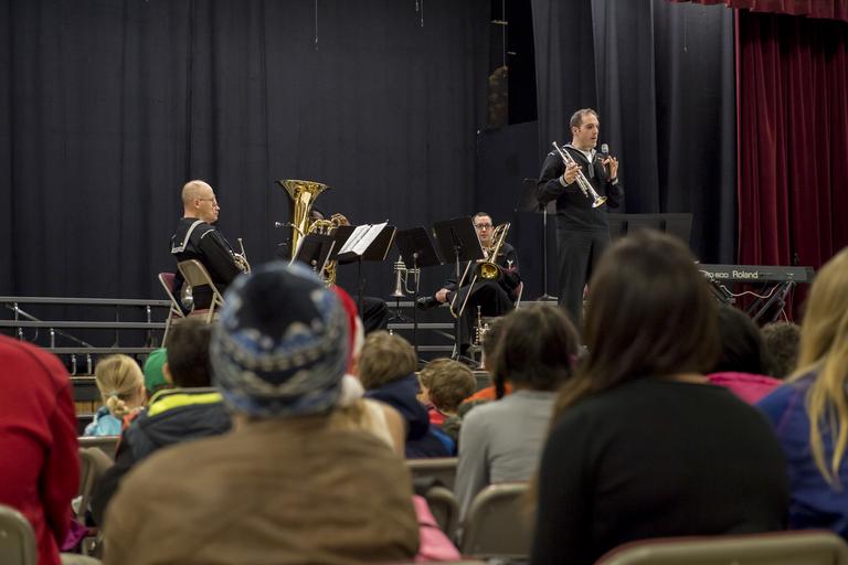 | Keywords: Brass Quintet Holiday Concert 161214-N-ZP059-075.jpg en 161214-N-ZP059-075 SILVERDALE Wash Dec 14 2016 Petty Officer 3rd Class Daniel Arute a member of Navy Band Northwest's Brass Quintet talks to parents students and staff of Central Kitsap Middle School during a holiday concert This was the first time that the Brass Quintet has played at Central Kitsap Middle School U S Navy photo by Petty Officer 2nd Class Jacob G Sisco/Released Unit Navy Public Affairs Support Element Det Northwest DVIDS Tags Holiday Concert; Washington; USN; Music; Bangor; Kitsap; Bass Quintet 2016-12-14 Petty Officer 2nd Class Jacob G Sisco https //www dvidshub net/image/3059585/brass-quintet-holiday-concert 161214-N-ZP059-075 2016-12-14 17 33 SILVERDALE WA US PD-USGov-Military-Navy Navy Band Northwest Images from DoD uploaded by Fæ |