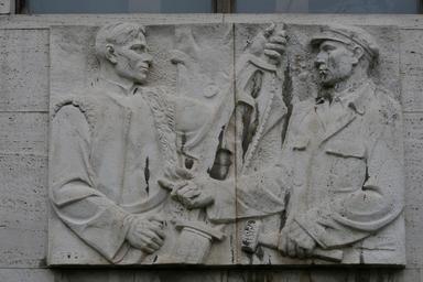 Keywords: Bratislava fakulta architektury12.jpg sk Reliéf LesnÃctvo na budove fakulty architektúry STU v Bratislave own ĽudovÃt Goga sculptor ¹ ºPeter Zelizňák photp 2009-11-07 Reliefs in Bratislava ĽudovÃt Goga Reliefs of men in Slovakia People at work in art |