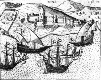 | Keywords: Braun Elmina SeegefechtHollPort 200dpi.jpg en Fighting between Dutch and Portuguese ships in front of the castle of Elmina de Seegefecht zwischen holländischen und portugiesischen Schiffen vor der Festung Elmina Braun Samuel Samuel Brun / des Wundartzet und Burgers zu Basel / Schiffarten Welche er in etliche newe Länder und Insulen / zu fünff onderschiedlichen malen / mit Gottes hülff gethan Basel 1624 Samuel Braun between 1610 1624 Dutch-Portuguese War Elmina Castle in art Ghana in the 1610s Caravels in art Line art of sailing ships Sailing ships of Portugal Naval battles involving Portugal Portugal in the 1610s Elmina Castle in the 17th century PD-old |