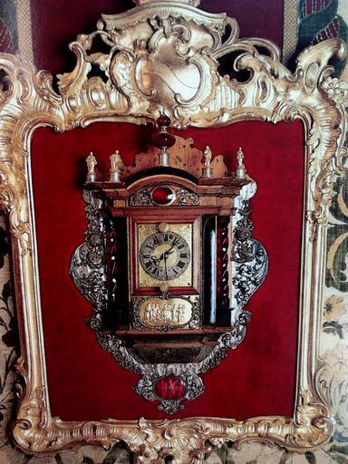 | Keywords: Braun Hanging clock.jpg Artwork Creator Georg Braun II 1695-1700 silver bronze ebony cranberry glass copper wood box iron brass mechanism / gilt wood velvet frame cm 56 35 6 clock / cm 97 63 6 frame Institution Wilanów Palace Museum accession number Wil 3048 object history > 1700 transfer Lubomirski family < 1867 transfer Wilanów Palace Warsaw credit line Georg Braun / fecit Augustae / I V G signature Hanging clock with an 18th-century frame bearing the Lubomirskis' arms Anna Kwiatkowska 2000 Clocks in the Wilanów collection Muzeum Pałac w Wilanowie pp 87-89 Agnieszka Fryz-Więcek 2005 Świat ze srebra Muzeum Narodowe w Krakowie p 129 own BurgererSF cc-zero DEFAULTSORT 1695-1700; Hanging clock Georg Braun II Clocks in the Wilanów Palace 17th-century clocks |