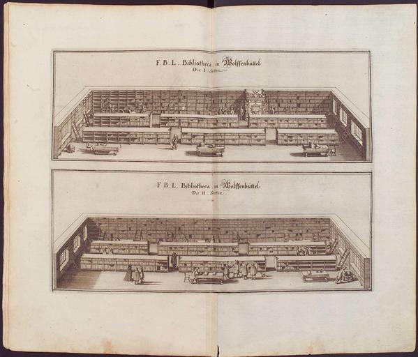 Keywords: Braunschweig Lüneburg (Merian) 340.jpg 339 341 Collections of Herzog August Bibliothek Interiors of libraries in art