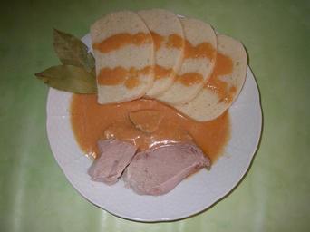 Keywords: Bravcove s milanskou.JPG en pork with milano sauce and yeast dumpling sk bravčové na milánskej omáčke s parenou knedľou own Foxburg 2009-08-11 Food of Slovakia