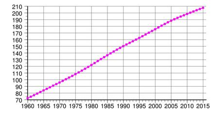 | Keywords: Brazil population.svg en Brazil population 1960-2015 From UN estimates World Population Prospects http //esa un org/unpd/wpp/Excel-Data/population htm The 2015 Revision<br/>Y-axis Number of inhabitants in millions 2016-02-07 own Delphi234 other versions Generated with Wikimedia SVG Chart SVG Chart/box cc-zero Temporal population graphs of Brazil Diagrams labelled with numbers only |