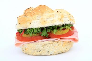 Keywords: bread brown bun calories close-up color colour delicious diet eating food fresh gherkin golden ham health healthy isolated lunch macro nutrition nutritious nutty oatmeal onion pickle relish salami roll sandwich seeded seeds seedy slim slimming snack tasty tomato tomatoes white wholegrain wholesome