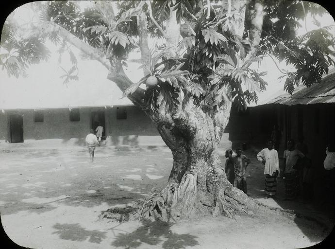 | Keywords: Bread Fruit Tree Ikorofiong, Calabar, Nigeria, ca. 1900-1910 (IMP-CSWC47-LS9-49).jpg en <br> Bread Fruit Tree Ikorofiong Calabar Nigeria ca 1900-1910 Black and white lantern slide picturing a bread fruit tree with a fruit clearly visible in the foreground The tree is in a courtyard of brick buildings with corrugated iron roofs and men and boys stand below the tree Other men can be seen entering a rear building Missionary Zerub Baillie set up a mission station at Ikorofiong after the death of King Eyo of Creek Town in 1858 Ikorofiong was an Efik outpost on Ibibio land The breadfruit tree is a member of the Moraceae fig family This slide comes from a set on mission culture and industry in Calabar southeast Nigeria generated by the Church of Scotland and the United Free Church of Scotland which was incorporated with the Church of Scotland in 1929 Photographer Unknown Filename IMP-CSWC47-LS9-49 tif Coverage date 1900/1910 Subject unesco Trees Part of collection International Mission Photography Archive ca 1860-ca 1960 Part of subcollection Photographs from the Centre for the Study of World Christianity University of Edinburgh U K ca 1900-ca 1940s Repository name Centre for the Study of World Christianity Archival file Volume5/IMP-CSWC47-LS9-49 tif Geographic subject city or populated place Calabar Repository address The University of Edinburgh School of Divinity New College Mound Place Edinburgh EH1 2LX United Kingdom Geographic subject country Nigeria Format aacr2 lantern slides 8 2 x 8 2cm Geographic subject continent Africa Rights Contact the repository for details Part of series Church of Scotland Slide and Visual Collection Calabar Church and Industry CSWC47-LS9 Repository email divinity-CSWC ed ac uk Date created 1900/1910 Publisher of the digital version University of Southern California Libraries Subject aat genre general views Format aat lantern slides; photographs Geographic subject state Cross River Access conditions http //www ed ac uk/schools-departments/divinity/research/centres/world-christianity/collections-resources Geographic subject forests File CSWC47/LS9/49 Subject lcsh Artocarpus; Breadfruit 1900/1910 date created author http //digitallibrary usc edu/cdm/ref/collection/p15799coll123/id/78486 PD-old-70-1923 Magic lantern images Images from USC Digital Library uploaded by Fæ International Mission Photography Archive ca 1860-ca 1960 Calabar |