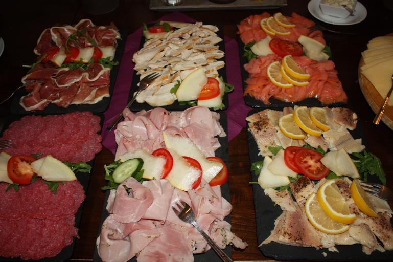 Keywords: breakfast buffet sausage plate salmon breakfast have breakfast tasty food benefit from meal nutrition delicious eat frisch hearty restaurant gastronomy eat outdoors ham