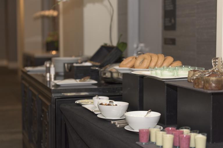 Keywords: breakfast plate bowl smoothie bagel food meal white table morning delicious healthy tasty bread coffee cup toast snack juice cooked traditional fresh restaurant fruit fork egg eating dish