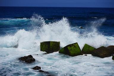 Keywords: breakwater wave sea ocean water spray inject stones block stone blocks