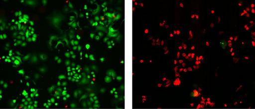 | Keywords: Breast Cancer; Nanotubes; Antibodies (5880985350).jpg Photomicrographs demonstrate the dramatic impact of using nanotubes to selectively locate and destroy HER2 breast cancer tumors Tumor cells on the left were treated only with antibodies against the HER2 protein and then irradiated with near-infrared light Those on the right were treated with a complex of antibodies and nanotubes and then irradiated Both cultures then were stained with fluorescent dyegreen color indicates live cells while red marks areas where cells have been killed Credit NIST Disclaimer Any mention of commercial products within NIST web pages is for information only; it does not imply recommendation or endorsement by NIST Use of NIST Information These World Wide Web pages are provided as a public service by the National Institute of Standards and Technology NIST With the exception of material marked as copyrighted information presented on these pages is considered public information and may be distributed or copied Use of appropriate byline/photo/image credits is requested https //www flickr com/photos/usnistgov/5880985350/ Breast Cancer; Nanotubes; Antibodies 2009-12-01 10 44 https //www flickr com/people/63059536 N06 National Institute of Standards and Technology PD-USGov National Institute of Standards and Technology https //flickr com/photos/63059536 N06/5880985350 2016-09-07 02 51 20 United States Government Work Uncategorized 2016 December 20 |