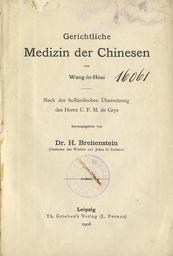 | Keywords: Breitenstein-Chinesische-Gerichtsmedizin-1908.jpg en German translation of Song Ci's book on forensic medicine the Xǐ yuān lù Washing Away of Wrongs 1247 de Deutsche bersetzung des von Song Cis 1247 publizierten Buchs über forensische Medizin Xǐ yuān lù Aufzeichnungen zur Tilgung von Ungerechtigkeit own WolfgangMichel 2014-12-28 1908 books Forensic medicine Translations History of China Cc-zero | ||||