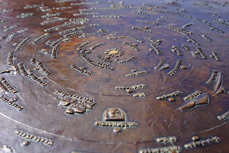 Keywords: breitenstein information board distance blackboard bronze plaque distances visible places compass point concentric distance measurement distance scale scale circular about swabian alb location specified locations cities mountains bronze bronze crafts bronze art blacksmithing bronze cast bronze casting work
