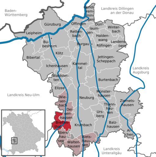 | Keywords: Breitenthal in GZ.svg DeLocMaps Breitenthal Breitenthal Schwaben Landkreis Günzburg District of Günzburg Günzburg district L'arrondissement de Günzburg Arrondissement de Günzburg Bayern Bavière Bavaria Adobe Illustrator <br/> own based on <br/> File Municipalities_in_Bavaria svg by TUBS<br/> Bavaria_AM svg by TUBS 2010-06-07 Hagar66 based on work of TUBS Hagar66/licensesection Attribution TUBS/Credits Locator maps of municipalities in Landkreis Günzburg Breitenthal Swabia | ||||