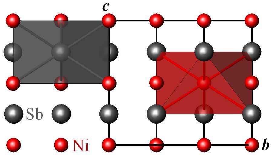 Keywords: Breithauptite structure.png en Crystal structure of Breithauptite NiSb P63/mmc projected onto the b c plane Gray antimony atoms red nickel atoms Data source R Leubolt H Ipser P Terzieff K L Komarek Nonstoichiometry in B8-Type NiSb Zeitschrift für Anorganische und Allgemeine Chemie 533 2 1986 205-214 own Perditax 2010-09-27 Breithauptite native antimony Nickel compounds Crystal structures in space group number 194 |
