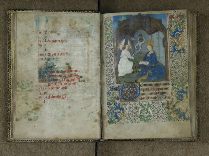 | Keywords: Brest Livre d'heures Annonciation.jpg fr Annonciation à la Vierge Image extraite du Livre d'heures calendrier en latin où figurent Sts Donatien et Rogatien Samson évêque Armagilus confesseur St Michel in Monte Tumba St Yves et sa translation St Mélanus episcopus presentatio beate Marie Au XVIe siècle le volume appartenait à Vincent Ogier demeurant à Dol et à sa fiancée Perrine Clinchant de Saint-Malo Mansucrit breton numérisé par l'Institut de recherche et d ™histoire des textes CNRS Manuscrit numérisé de la bibliothèque municipale de Brest France century 15 http //biblio brest fr anonymous Custom license marker 2013 08 27 PD-old-100 Uploaded with UploadWizard Miniatures of annunciation Livre d'heures de Brest |
