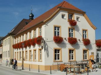 Keywords: brewery zum ritter schwetzingen beer production house front exterior building decorative restored historic architecture construction structure facade