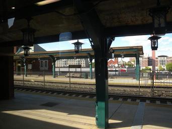 | Keywords: Brick Church sta plat jeh.jpg en Looking north on a sunny afternoon from inside a New York bound train at platforms and eponymous church in background own Jim henderson 2010-05-16 40 45 55 02 N 74 13 7 8 W alt 0_source exif_heading NNE cc-zero Brick Church NJT station |