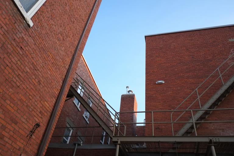 Keywords: brick walls masonry industrial building exterior stairs brick stone urban