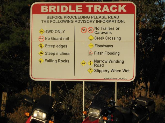 | Keywords: Bridal Track.jpg en Entrance sign to the Bridle Track that runs between Hill End and Bathurst NSW Australia David Gorton David Gorton 2009-04-01 cc-zero Signs in New South Wales Bridle Path Warning signs in Australia Hill End New South Wales April 2009 in Hill End New South Wales |
