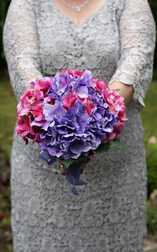 Keywords: bride bouquet wedding love female marriage woman dress bridal flower elegance romance floral romantic pink hydrangea purple