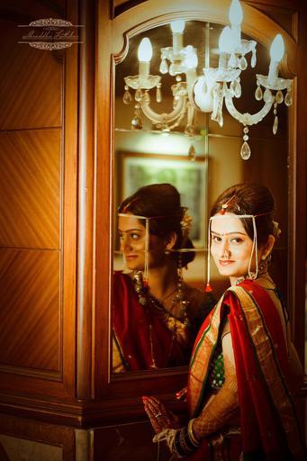Keywords: bride woman person mirror happy proud marriage maharashtrian marathi wedding hindu rituals jewelry tradition girl indian