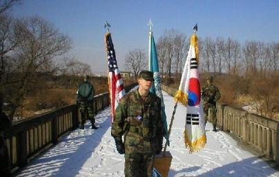 | Keywords: Bridge2003.JPG A U S soldier participates in a ceremony on the en Bridge of No Return in the Joint Security Area of the DMZ of the Korean peninsula Taken by Timjbax in 2003 Transferred from http //en wikipedia org en wikipedia 2003 Uploaded 2006-09-12 Timjbax at http //en wikipedia org en wikipedia Released into the public domain by the author en wikipedia Timjbax original upload log page en wikipedia Bridge2003 JPG 2006-09-12 13 04 Timjbax 540×342×8 39448 bytes <nowiki>This is a picture taken by my camera in 2003 </nowiki> Bridge of No Return |