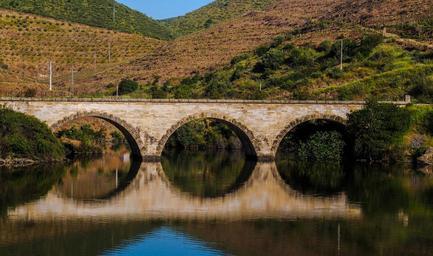 Keywords: bridge duero river landscape reflection douro zamora spain architecture water scenic hills