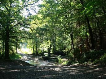 Keywords: bridge forest bach light sun nature mood trees away green schöller court odenthal