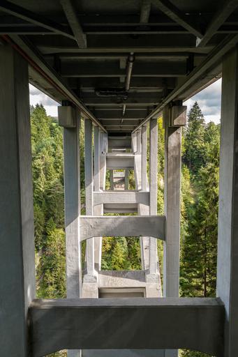 Keywords: bridge gorge echelsbacher bridge ammer gorge ammer architecture valley clouds sky deep height forest imposing fear of heights bavaria germany