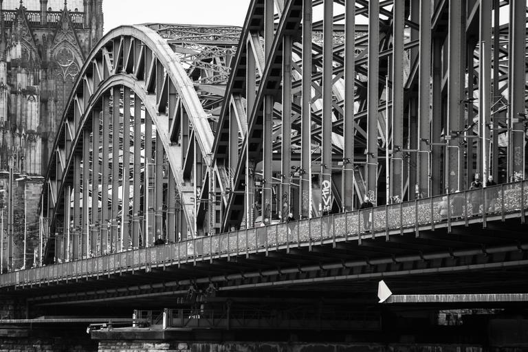 Keywords: bridge hohenzollern bridge metal cologne steel railway bridge architecture historic preservation cologne cathedral building arch arches strive metal rods