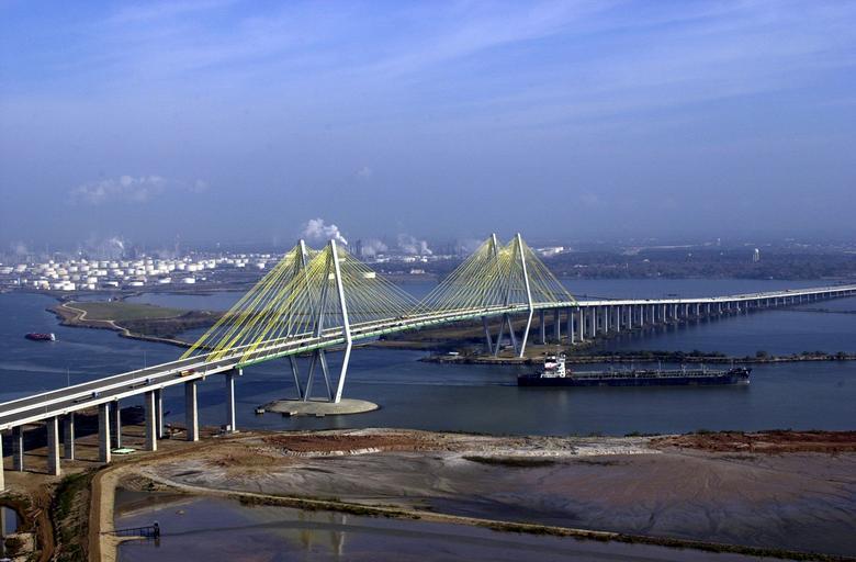 Keywords: bridge houston texas sky clouds bay harbor inlet water summer spring shoreline nature outside buildings oil refinery architecture