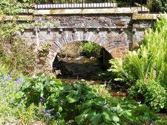 Keywords: bridge railings stone arch vegetation ferns water