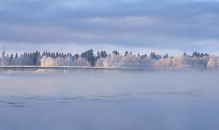 Keywords: bridge river water forest trees woods winter snow ice fog foggy mist sky nature outside beautiful cold architecture