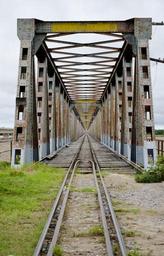 Keywords: bridge train trillo railway steel step level river long path sleepers threshing rail long road