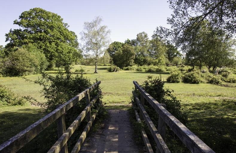 Keywords: bridge trees forest nature landscape wood green outdoor summer natural wooden nobody season sky scenic view scene grass england hampshire new forest tranquil countryside meadow scenery peaceful beautiful rural country