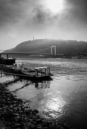 Keywords: bridge under the bridge travel landmark famous urban transportation old construction structure concrete pillar column overpass outdoor transport canal traffic way cross steel line track scenic trip journey path waterway black and white budapest landscape |