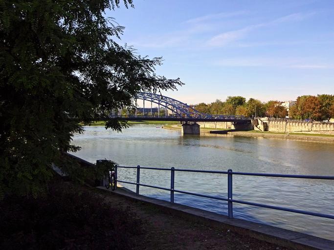 Keywords: bridge wisla kraków river panorama buildings landscape water city on the river spacer