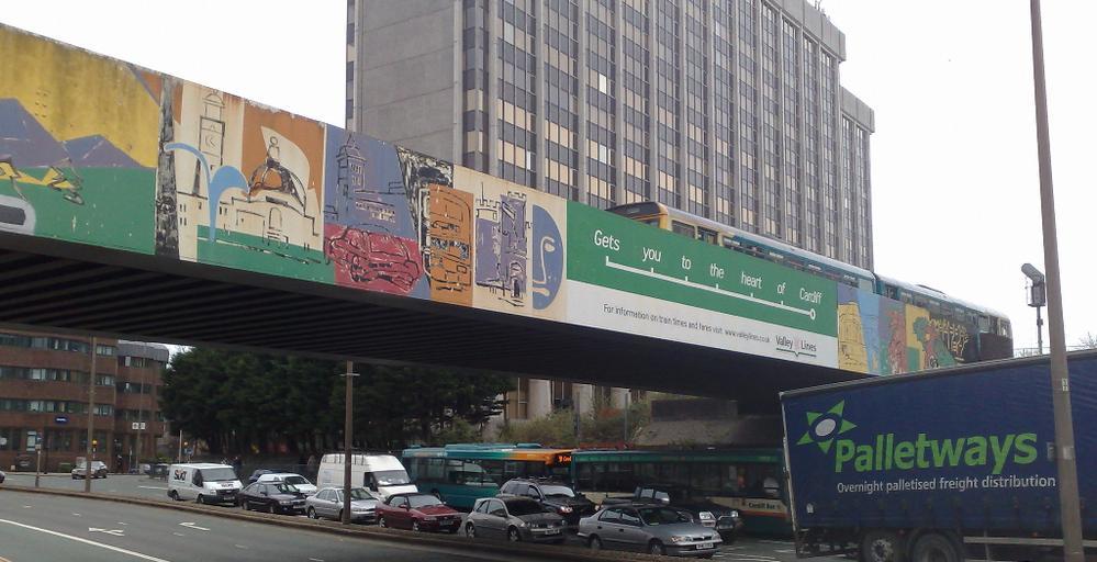 | Keywords: Bridge with Valley Lines advertising.jpg Bridge north of Cardiff Queen Street railway station with Valley Lines advertising on it An Arriva Trains Wales-liveried Class 142 train is passing over the bridge own original text self-made 1 2008-04-02 Ansbaradigeidfran talk Ansbaradigeidfran Original upload log en wikipedia Drilnoth CommonsHelper page en wikipedia Bridge_with_Valley_Lines_advertising jpg 2008-04-17 19 21 Ansbaradigeidfran 1024×525× 508162 bytes <nowiki> Bridge north of Cardiff Queen Street railway station with Valley Lines advertising on it An Arriva Trains Wales-liveried Class 142 train is passing over the bridge self-made 2008-04-02 ~~~ other_vers</nowiki> April 2008 in Wales A4161 road Wales British Rail Class 142s of Arriva Trains Wales Railway bridges in Cardiff |
