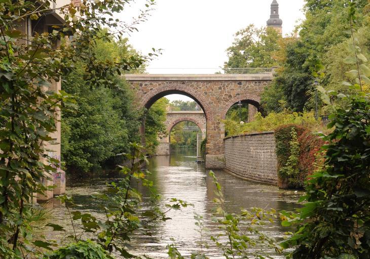 Keywords: bridges channel leipzig architecture water industrial park nature idyllic