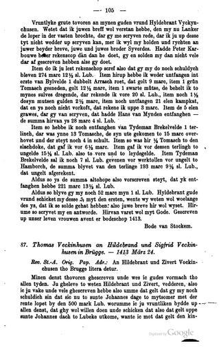 Keywords: Briefwechsel Hildebrand Veckinchusen 105.jpg Hildebrand Veckinchusen Briefwechsel eines deutschen Kaufmanns im fünfzehnten Jahrhundert http //books google com/books 3fid 3d8chAAAAAIAAJ printsec 3dfrontcover dq 3dVeckinchusen hl 3dde century 14 Wilhelm Stieda Ed Author died more than 70 years ago - public domain PD-old Briefwechsel Hildebrand Veckinchusen