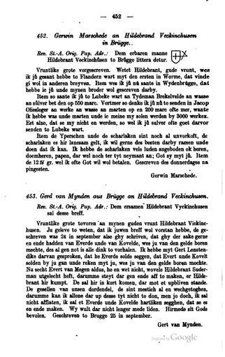 Keywords: Briefwechsel Hildebrand Veckinchusen 452.jpg Hildebrand Veckinchusen Briefwechsel eines deutschen Kaufmanns im fünfzehnten Jahrhundert http //books google com/books 3fid 3d8chAAAAAIAAJ printsec 3dfrontcover dq 3dVeckinchusen hl 3dde century 14 Wilhelm Stieda Ed Author died more than 70 years ago - public domain PD-old Briefwechsel Hildebrand Veckinchusen |
