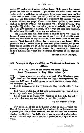 | Keywords: Briefwechsel Hildebrand Veckinchusen 504.jpg  Hildebrand Veckinchusen Briefwechsel eines deutschen Kaufmanns im fünfzehnten Jahrhundert http //books google com/books 3fid 3d8chAAAAAIAAJ printsec 3dfrontcover dq 3dVeckinchusen hl 3dde century 14 Wilhelm Stieda Ed Author died more than 70 years ago - public domain PD-old Briefwechsel Hildebrand Veckinchusen |