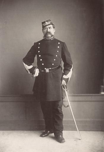 | Keywords: Brigadier de Gardiens de la paix.jpg Photograph Creator Hippolyte-Auguste Collard en City Police Préfecture Paris en Brigadier de Gardiens de la paix Portrait of a man whole-length full face handlebar moustache wearing uniform of three-quarter length jacket frogging on sleeves buttons down both sides of chest peaked cap sword in left hand right hand holding gloves on his hip depicted people depicted place between 1876 1880 albumen silver 66 5 x 57 cm accession number H87 208/33 SLVIC-digitalimage 273521 H87 208/33 Album with leather covered cardboard covers 148 cardboard leaves holding 69 albumen silver print photographs on one side of leaf only Individual titles and official photographer stamped below image Title embossed on front cover with seal of the City of Paris in gilt ink ; title also on spine Label inside front cover reads Presented to the Public Library c Victoria on the eighth day of April 1881 by the Government of France Hand inscribed note on first page of album upper left Presented April 8th 1881 illegible Photographs various sizes 38 x 27 cm and smaller <br> Album was designed to show the use of photography in the solving of crimes and disasters Gift of the French Government possibly following the International Exhibition of 1880 <br> Official photographer's stamp on each page lower left some images dated 1876 and 1880 One photographer identified Hippolyte-Auguste Collard Institution State Library of Victoria object history exhibition history credit line Gift; Government of France; 1881 Information field Author Préfecture de police de Paris Service Photographique PD-100 Gardien de la paix Police officers in Paris Ville de Paris Préfecture de police Images of Paris from the State Library of Victoria |