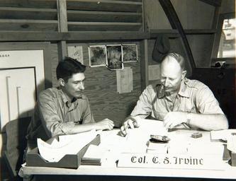 | Keywords: brigadier general clarence s. s bill irvine special collection photo people Catalog #: 09_01872 Title: Brigadier General Clarence S. ""Bill"" Irvine Special Collection Photo Additional Information: Clarence S. Irvine (on right) seated at his desk smoking a cigar with unidentified man, Brigadier General Clarence Irvine enjoyed a long distinguished military career, mainly involving engineering. He served with the XXI Bomber Command (B-29's) during WWII and continued to serve throughout the 1950s and 1960s. Tags: Brigadier General Clarence S. ""Bill"" Irvine Special Collection Photo Repository: San Diego Air and Space Museum Archive Catalog #: 09_01872 Title: Brigadier General Clarence S. ""Bill"" Irvine Special Collection Photo Additional Information: Clarence S. Irvine (on right) seated at his desk smoking a cigar with unidentified man, Brigadier General Clarence Irvine enjoyed a long distinguished military career, mainly involving engineering. He served with the XXI Bomber Command (B-29's) during WWII and continued to serve throughout the 1950s and 1960s. Tags: Brigadier General Clarence S. ""Bill"" Irvine Special Collection Photo Repository: San Diego Air and Space Museum Archive |