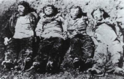 Keywords: Briganti Volonnino.JPG it Briganti della banda Volonnino foto scattata nella metà dell'ottocento http //www brigantaggio net/brigantaggio/Briganti/Volonnino htm author PD-old Italian brigands Black and white photographs of corpses of men