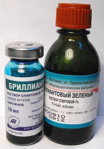 Keywords: Brilliant green 1a.jpg en Photo of a brilliant green's solution's pack own Vadim Akopyan 12 01 2011 Cc-zero Antiseptics Pharmaceutical product packaging Triarylmethane dyes Glass vials