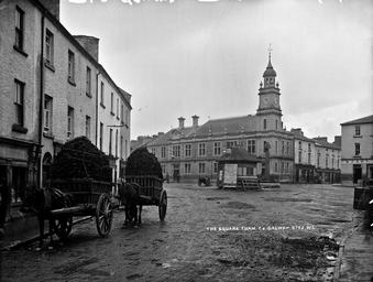 | Keywords: Bringing home the turf! (26972149122).jpg A topical subject even if the shot is over 100 years old Bringing in the turf for fires was an important source of fuel for most households and here are two fine loads in the Square in Tuam County Galway Somewhat ignoring the fossil fuel laden carts today's discussion focused on the posters we see - for the Ormonde family's Vivograph entertainments which we learned were a form of early cinema which visited towns around the country and http //earlycinema gla ac uk/advert/503/ indeed Scotland in the first years of the 20th century We also got some insight into the Tuam Town Hall pictured to the rear which was significantly https //www google ie/maps/ 53 514644 -8 8511765 3a 15y 240 64h 115 44t/data 3m7 1e1 3m5 1stVdlgvvc_KYepYOl511GYA 2e0 5s20090401T000000 7i13312 8i6656 6m1 1e1 hl en remodelled in the decades immediately before this picture We also learned about the now 900 year-old https //en wikipedia org/wiki/Tuam Tuam High Cross which was rebuilt and moved to the Square in the 19th century before being moved again out of the middle of the now roundabout in the 1990s Photographer Robert French Collection http //catalogue nli ie/Collection/vtls000313414 Lawrence Photograph Collection Date c 1880-1900 likely c 1900 based on date on poster and comments below NLI Ref http //catalogue nli ie/Record/vtls000041541 L_ROY_06759 You can also view this image and many thousands of others on the NLI ™s catalogue at http //catalogue nli ie catalogue nli ie https //www flickr com/photos/nlireland/26972149122/ Bringing home the turf https //www flickr com/people/47290943 N03 National Library of Ireland on The Commons http //www nli ie/en/flickr-commons aspx National Library of Ireland on The Commons Flickr Commons 53 514940 -8 851257 source Flickr Flickr-no known copyright restrictions PD-Old PD-1996 National Library of Ireland on The Commons https //flickr com/photos/47290943 N03/26972149122 2016-05-24 13 10 38 No known copyright restrictions County Galway Images from the National Library of Ireland Robert French Tuam Crosses Urban squares |