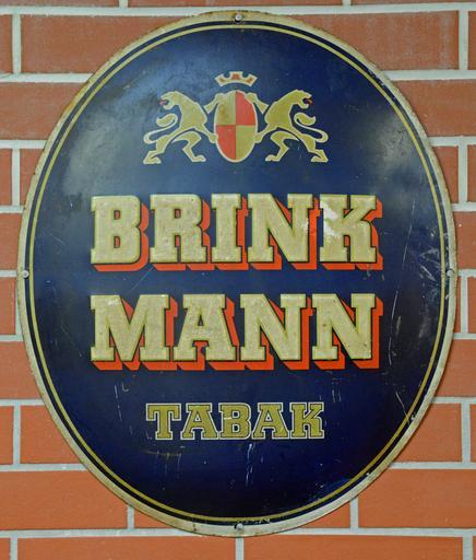Keywords: Brinkmann Tabak Werbeschild.jpg en Billboard Brinkmann Tabak Bremen de Werbeschild der Brinkmann Tabakfabriken aus Bremen own Monster4711 2012-09-23 Companies based in Bremen Enamel tobacco advertising signs Tobacco brands Cc-zero
