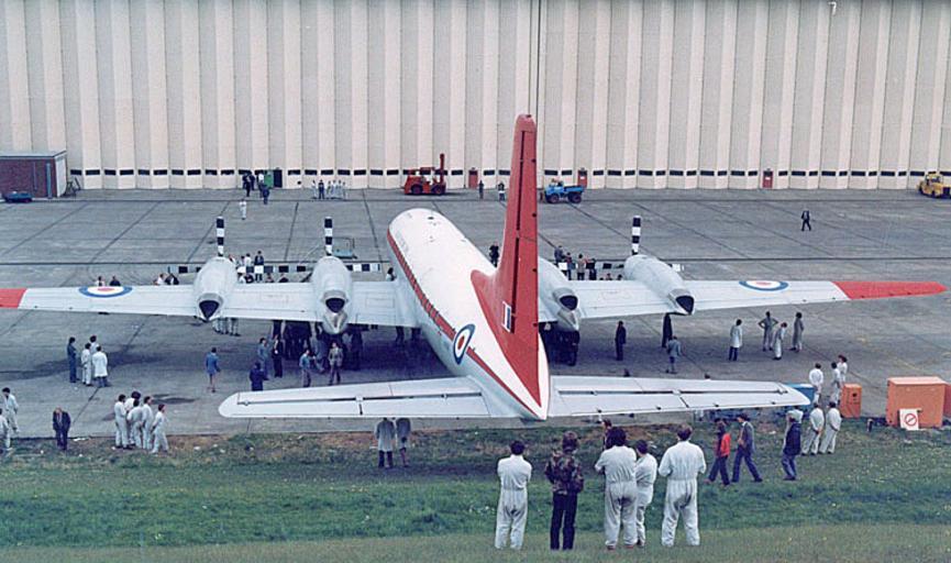 Keywords: Britannia.red.750pix.jpg Bristol Brittania XX367 del Ministerio de Defensa británico anteriormente matriculado como G-AOVM realizando visita de cortesía a la fábrica de Filton Bristol England en 1983 El primer vuelo tuvo lugar el 25 de abril de 1958 Como avión civil voló para BOAC British Eagle y Air Spain Fue comprado por el Ministerio de Defensa británico en 1972 Fotografiado por Adrian Pingstone y liberado al dominio público Arpingstone G-AOVM aircraft |